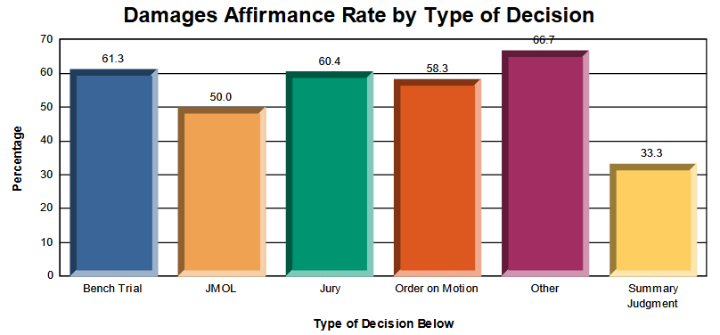 • Historical affirmance and reversal rates, broken down by legal issue, judge, technology, and type of decision below
