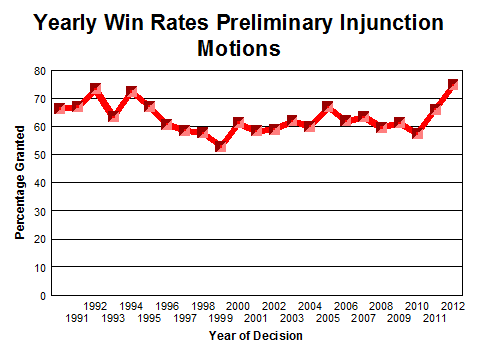 - District and individual judge analysis of over 6100 preliminary injunction rulings